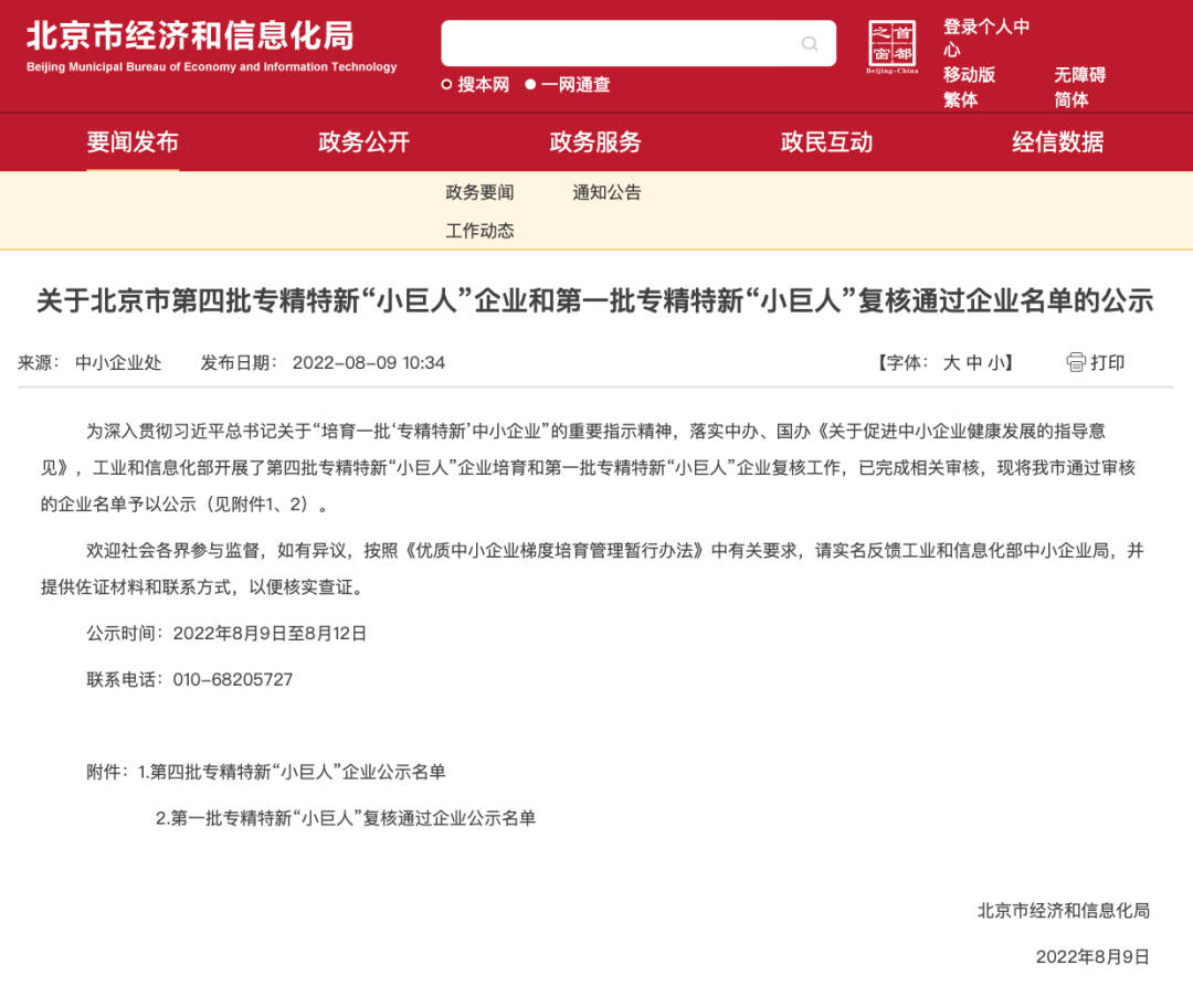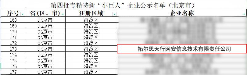 近日,拓尔思天行网安信息技术有限责任公司通过工业和信息化部第四批专精特新“小巨人”企业审核,成功入选国家级专精特新“小巨人”企业。北京市经济和信息化局于8月9日进行了通过企业名单的公示。