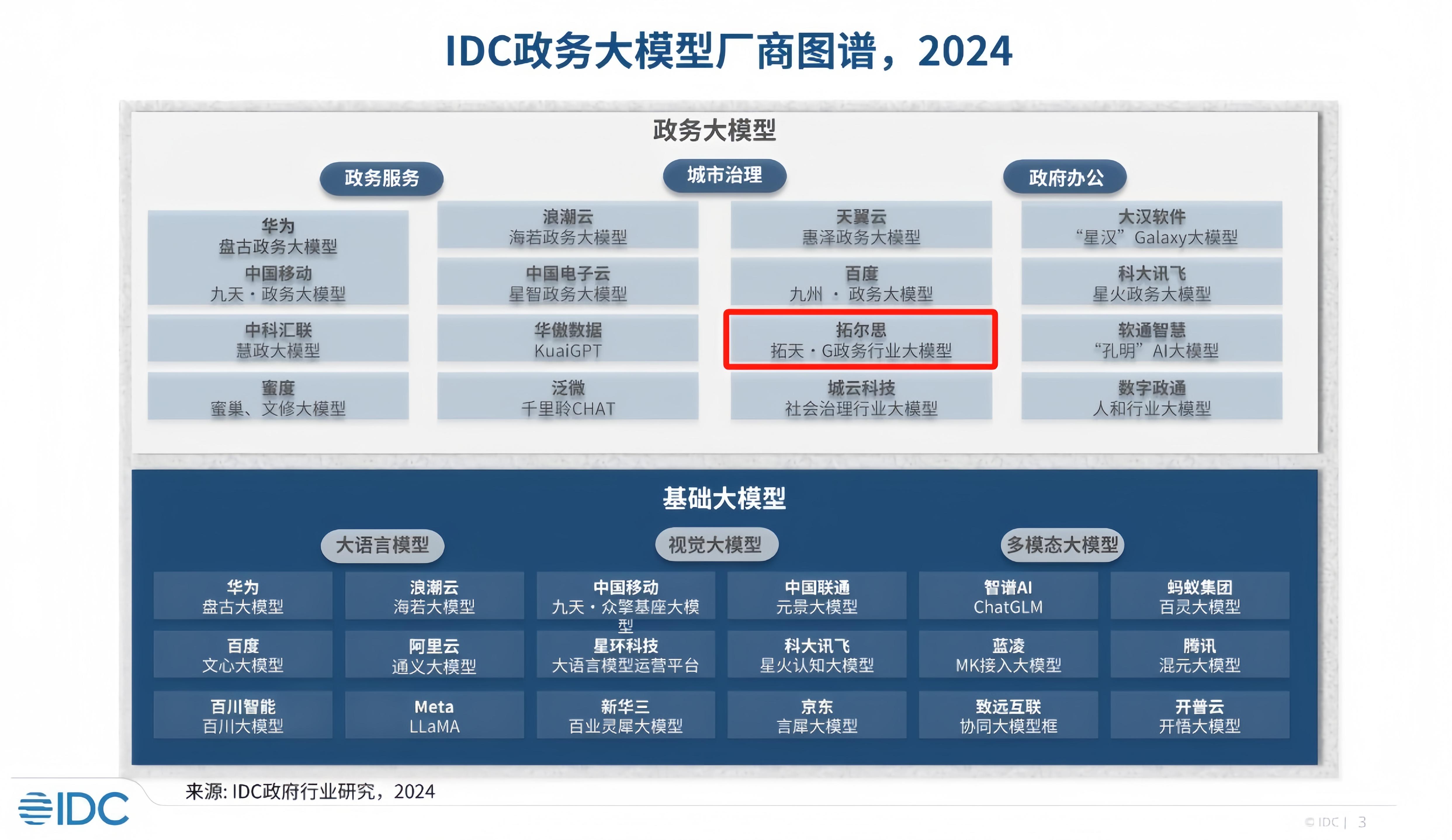 On March 27, IDC, a well-known technology market research firm, released "Analysis of the Application Market of Government affairs LLM in the Digital Government, 2024," further exploring the application scenarios of the Government affairs LLM, the layout of vendor capabilities, and the future prospects of generative artificial intelligence in the political affairs industry. As a provider of artificial intelligence, big data, data security products, and services that have been deeply cultivating in the field of digital government for many years, TRS was successfully selected in the IDC Government affairs LLM Enterprises Map.
