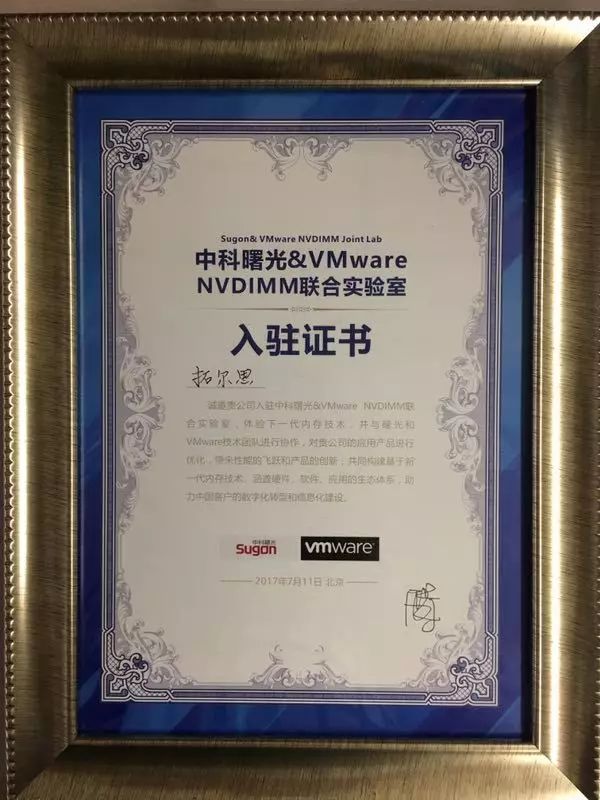 7月,中科曙光&VMware联合实验室在北京正式成立,该实验室由中科曙光和VMware牵头成立,拓尔思副总裁肖诗斌受邀出席“中科曙光&VMware NVDIMM联合实验室启动会”。启动会上,包括拓尔思、南大通用、神州信息等在内的6家国内一流软件企业,成为首批入驻联合实验室的企业。