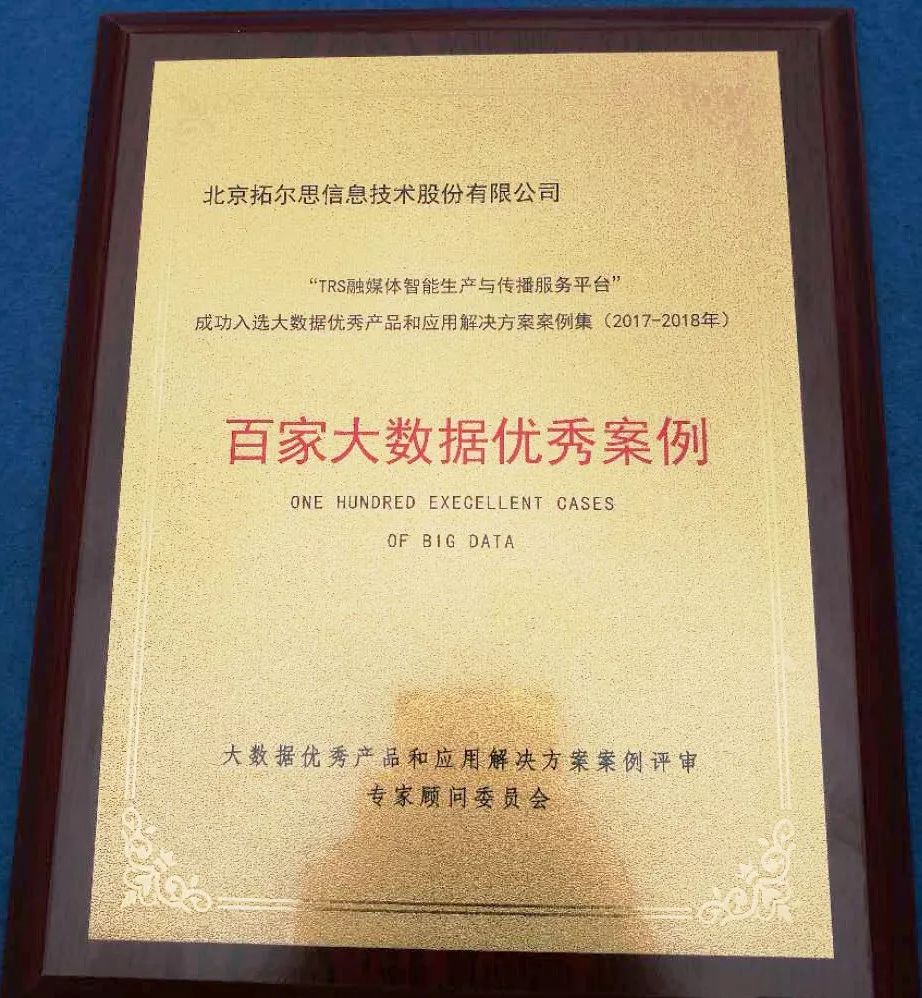 TRS融媒体智能生产与传播服务平台是十佳大数据案例里面唯一的媒体领域的获奖案例,响当当地奠定了拓尔思在媒体融合领域的龙头地位!